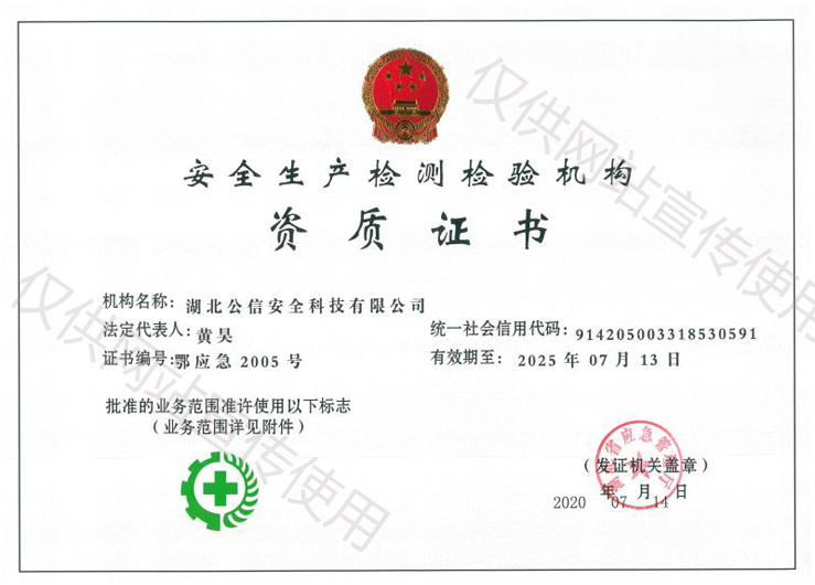資質名稱: 安全生產(chǎn)檢驗檢測機構資質證書